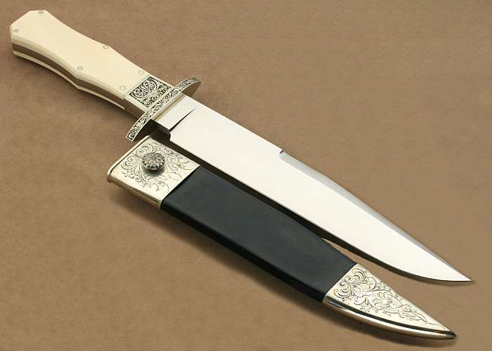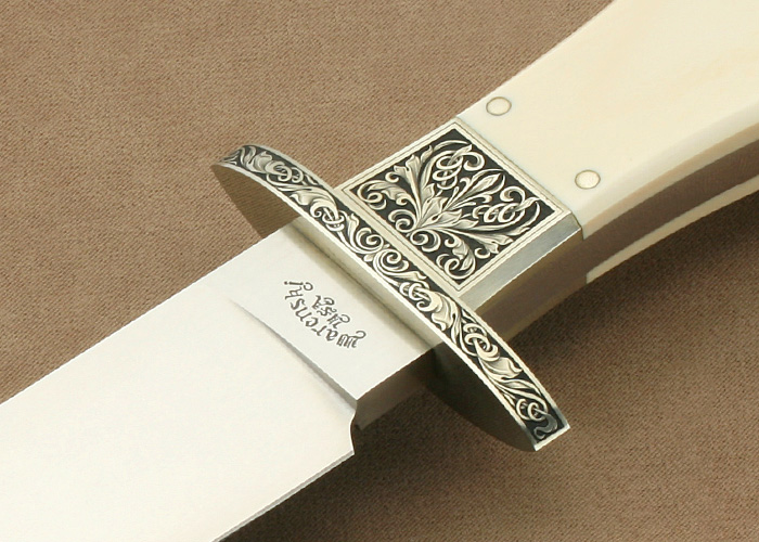 Buster Warenski pre-ban elephant ivory bowie engraved by Julie Warenski – 1995